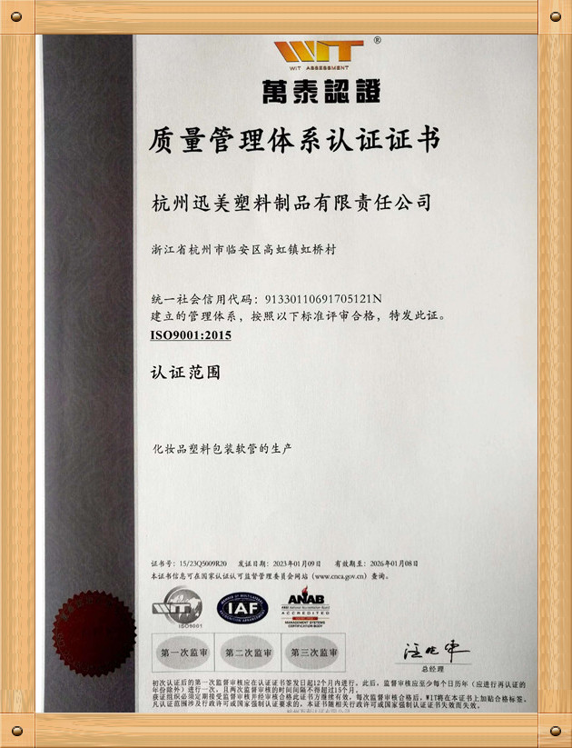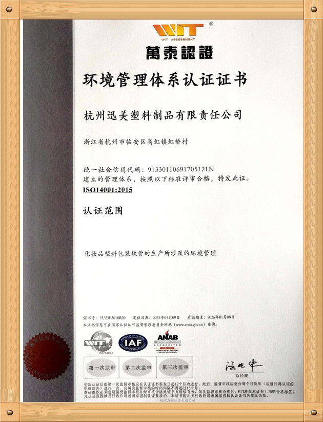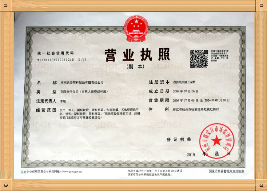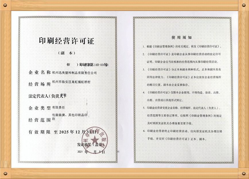 杭州迅美塑料制品有限責(zé)任公司 資質(zhì)證書展示